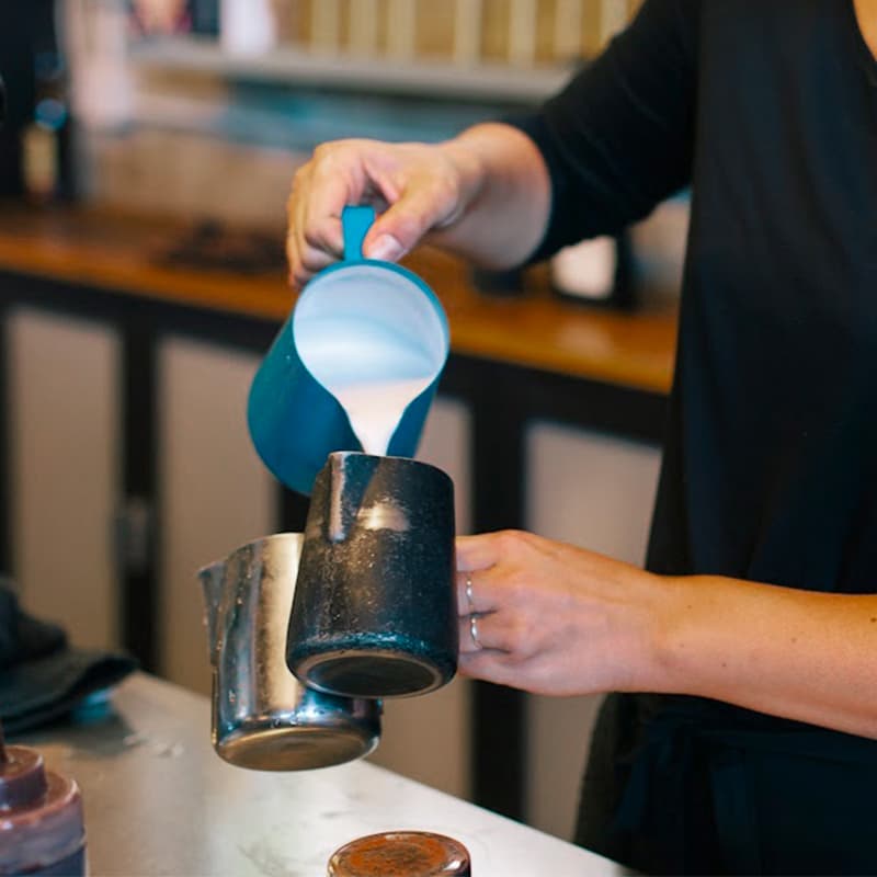L'avis de Bastien “Il existe plusieurs contenances, l’intérêt d’avoir un pichet plus grand, notamment dans un milieu où vous servez plusieurs personnes, est de faire du Milk Sharing : on travaille une seule et même mousse qu’on répartit ensuite dans différentes boissons. Cela évite d’avoir des pertes de matière première sur le lait et permet de gagner du temps : pour deux boissons vous effectuez un seul travail de lait”