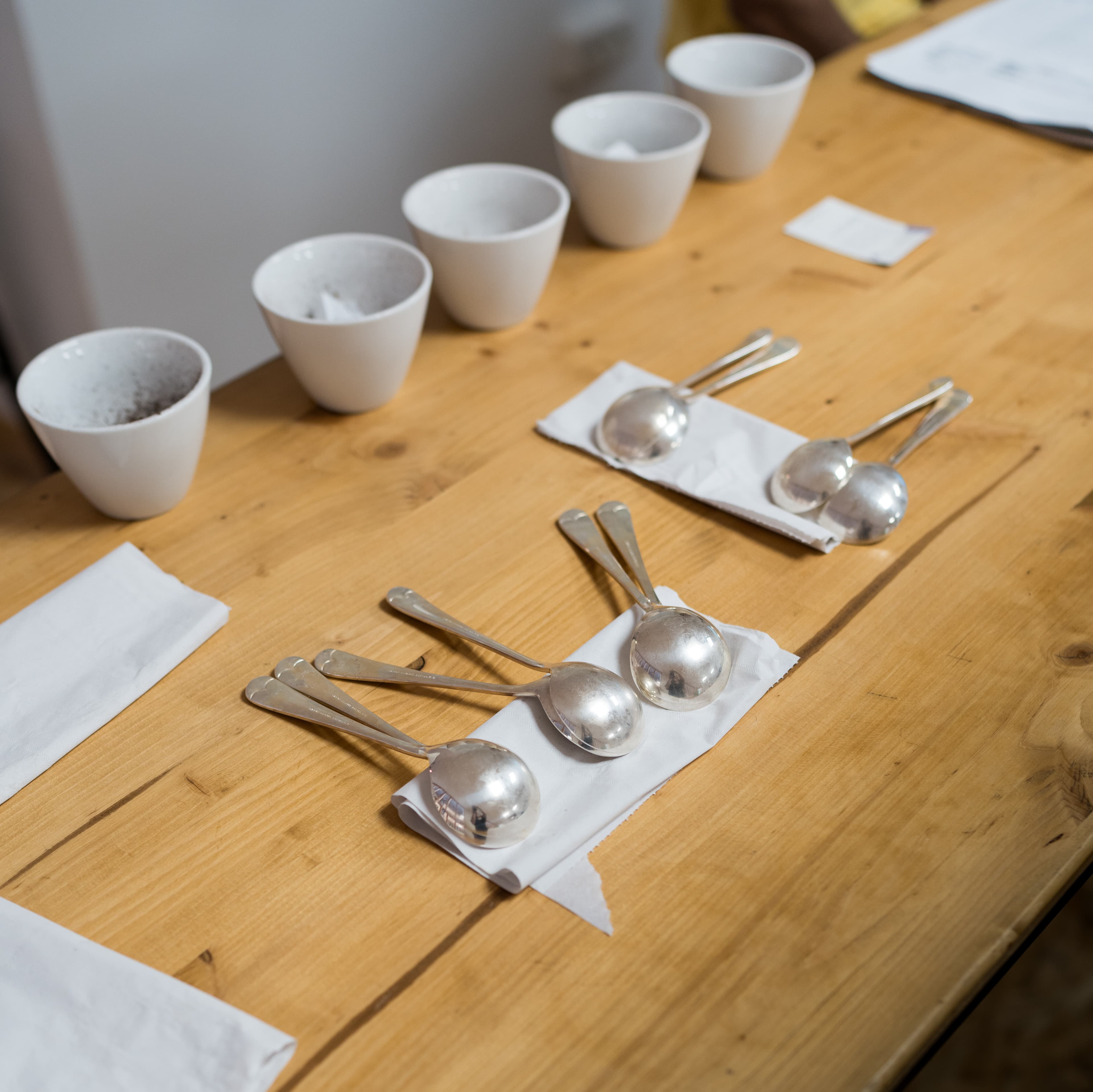 Goûtez par la suite à l’aide de cuillères à cupping