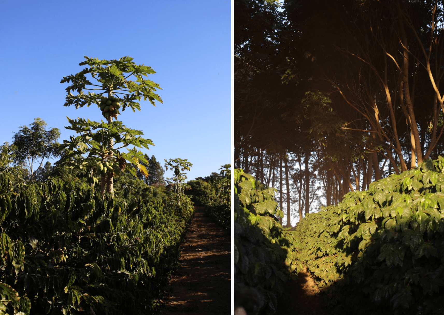 La deuxième expérimentation est pensée autour de la durabilité. Comment créer un environnement plus résilient autour du caféier, en s’inspirant des logiques agroforestières ? Deux axes sont en test : A. L’ombrage est une question d’équilibre. Il s’agit de trouver des arbres capables de protéger les caféiers de la chaleur, sans les étouffer ni entrer en concurrence avec eux. Ces critères, on les a discutés directement sur le terrain, en parcourant les parcelles avec l’équipe de Daterra.