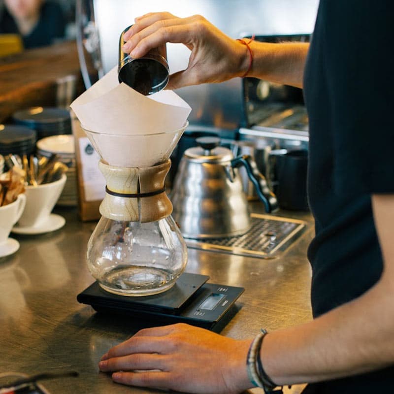 Besoins : un V60 - filtre cône - eau filtrée - 60gr/L de café - balance précise - bouilloire