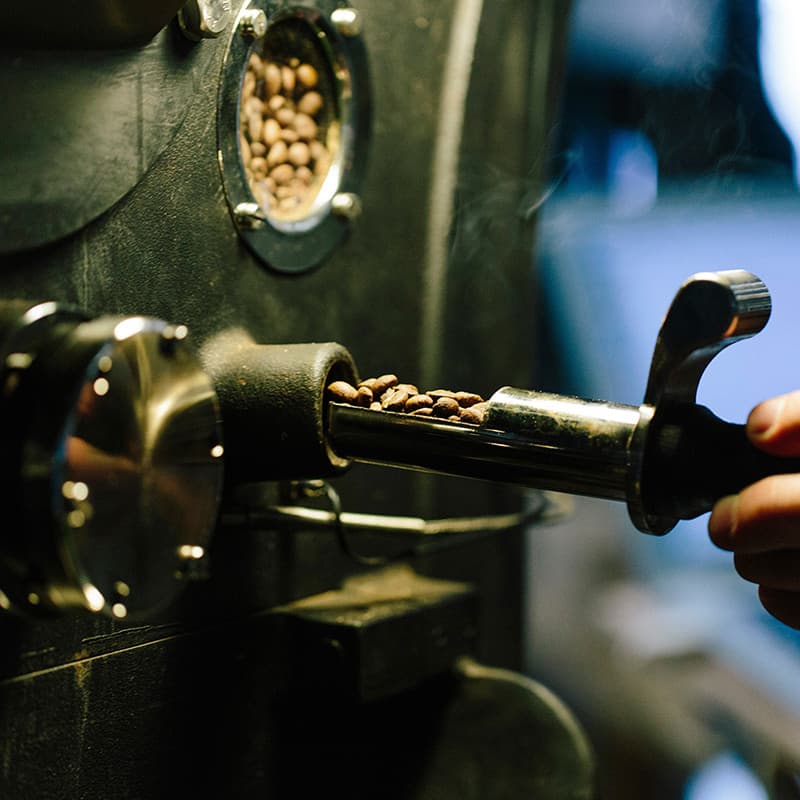 La torréfaction sur la base du degré de couleur que nous faisons avec Il Piccolo est une opération délicate. Nous l’exécutons avec la plus grande précaution. Les cafés qui sont caramélisés trop rapidement ou avec trop de chaleur pendant de courtes sections du roast donnent en tasse des goûts fétides et amers et des saveurs cuites de pain de seigle. Dans le pire des cas, lorsque la torréfaction est mal gérée, une quantité excessive d'huile de surface peut se développer, donnant au café une saveur d'huile rance. Nous veillons donc à développer les saveurs caramélisées profondes sans perdre les caractéristiques de chaque café. Chaque type de café a un rôle à jouer. Lors de la torréfaction d'Il Piccolo, nous cherchons essentiellement à faire briller un ou deux des caractéristiques de chaque café dans la tasse. Caraméliser les cafés à ce degré réduit la complexité aromatique et oblige le torréfacteur à être précis quant à la caractéristique dominante. C’est la raison pour laquelle, pour avoir un expresso avec une saveur intéressante et variée, un mélange de cette nature nécessite de nombreux cafés différents. Nous en avons choisi quatre.