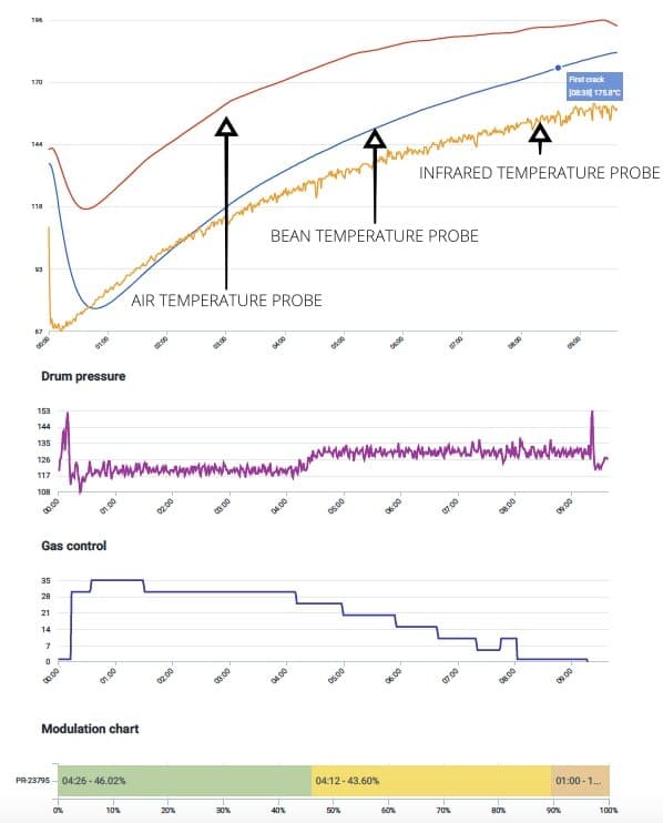Nous prêtons une attention particulière aux changements physiques et chimiques du grain, à la lecture de la température, de la durée du batch et bien sûr à la couleur finale. Cependant, chaque café modifiera l'environnement de torréfaction à certains moment du déroulé de la torréfaction. Fondamentalement, les grains de café sont des adolescents rebelles qui font le contraire de ce que nous leur demandons, juste par principe !