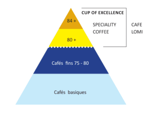 Le café est évalué selon une échelle de notation internationale sur 100 points par des professionnels habilités qu'on appelle Q-Grader. C'est un standard. Le café est considéré comme ayant le grade specialty lorsque la note qu'il obtient dépasse 80 points sur 100.